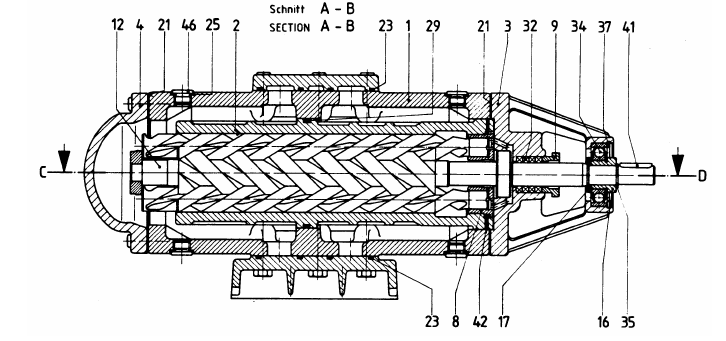 ◆U12.1結(jié)構(gòu)圖 ◆E6.7結(jié)構(gòu)圖(940轉(zhuǎn)速以下) ◆E6.7結(jié)構(gòu)圖(940以上) ◆E15結(jié)構(gòu)圖(940以下) ◆K2結(jié)構(gòu)圖 ●U12.1結(jié)構(gòu)圖 1.泵體 2.襯套 8.平衡套 12.主桿 13從桿 34 軸承 83 機(jī)械密封 ●SM三螺桿泵E6.7結(jié)構(gòu)圖(940轉(zhuǎn)速以下) ●E6.7結(jié)構(gòu)圖(940以上)