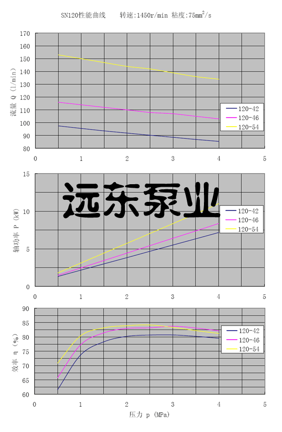 SN120三螺桿泵(SNH120三螺桿泵,SNS120三螺桿泵)轉(zhuǎn)速1450曲線圖