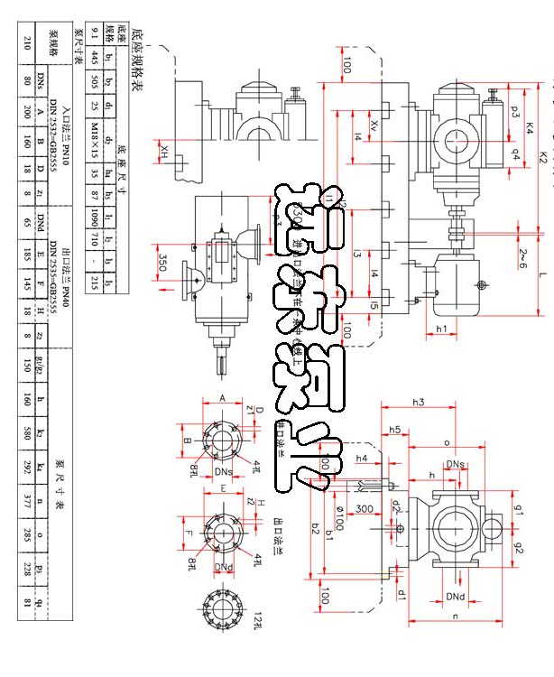 SNH210三螺桿泵配15kw-4電機(jī)安裝尺寸圖,此安裝尺寸圖還適用于:SNH440三螺桿泵包括: